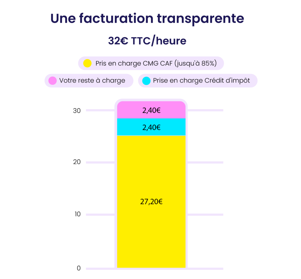 - Jusqu’à 85 % du coût pris en charge selon vos revenus, nombre d’enfants et leur âge.